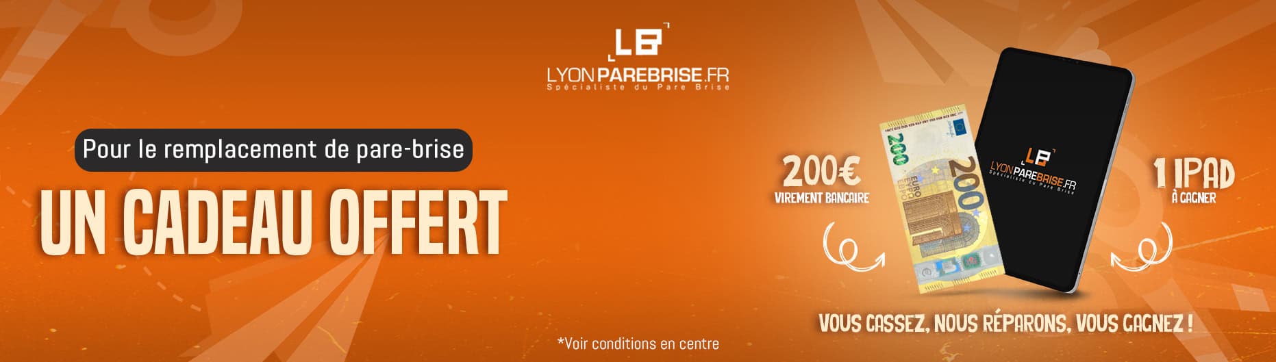 *en cas de remplacement de pare-brise, votre franchise est offerte à hauteur de 150€